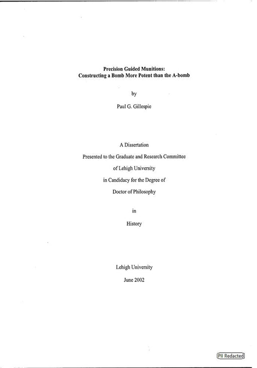 Precision Guided Munitions: Constructing a Bomb More Potent than the A-bomb by Paul G. Gillespie Lehigh University - June 2002 T...