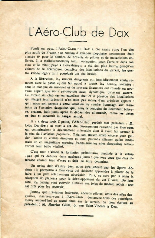Aéroclub d'Auvergne - Jahrbuch 1922 Manchmal enthalten Jahrbücher interessante Texte, so auch dieses! Am 8. Mai 1920 gründeten zwei ehemalige Asse...