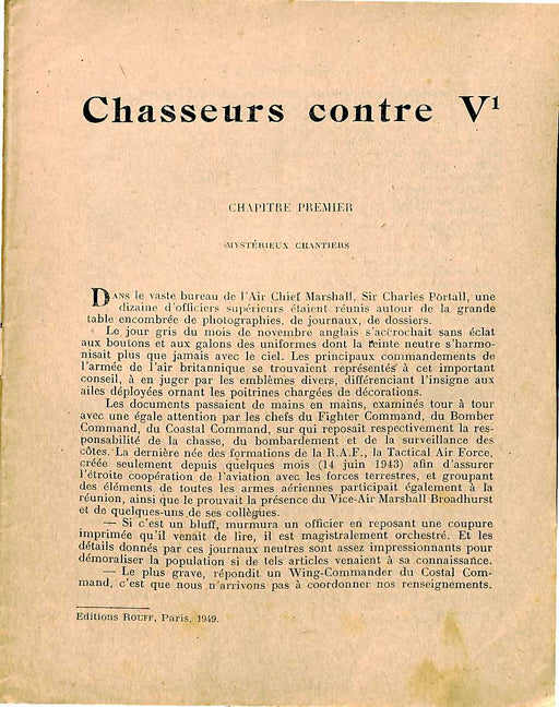 Chasseurs contre V1 Par J. Zorn - Collection Patrie (1949) - Editions RouffL'histoire, à peine romancée, de Jean Maridor, pilote français de la RAF...