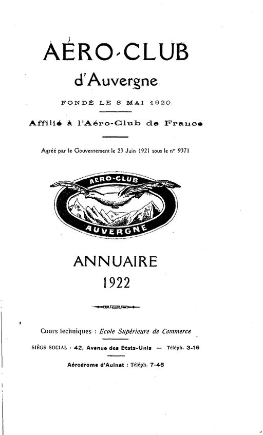 • Aeroclub d'Auvergne - 1922 년 연감 (ebook)