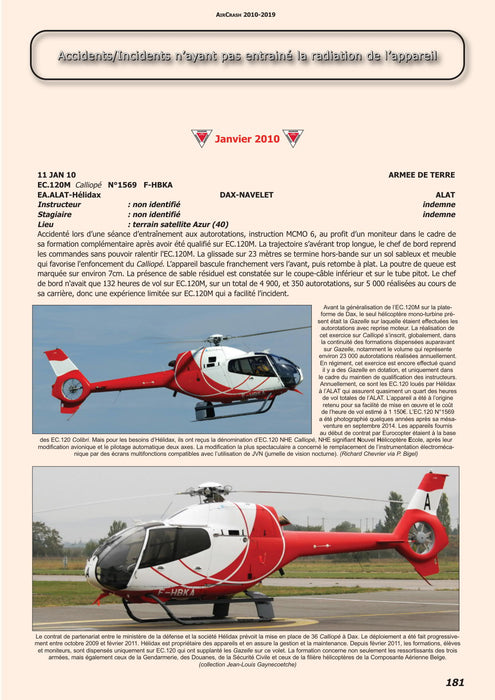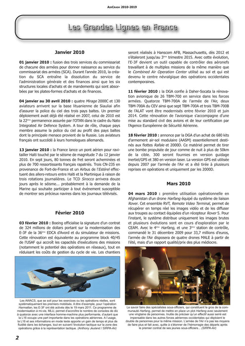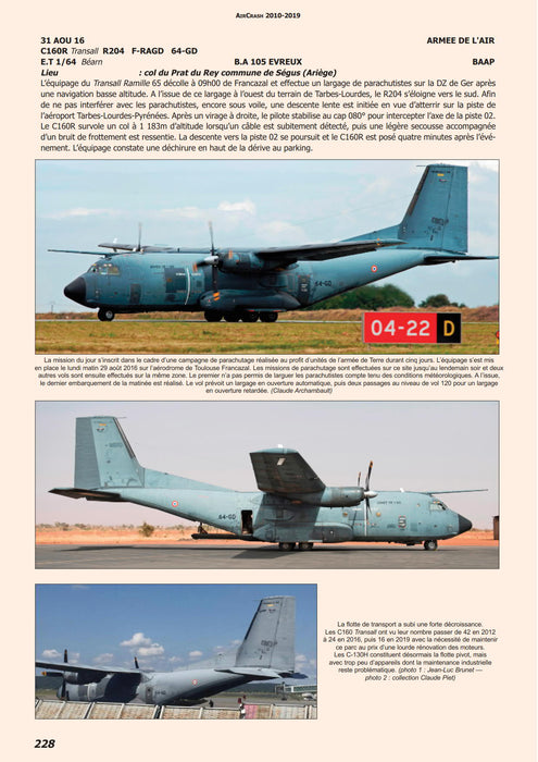 As in previous years, this 2010-2019 issue contains 264 pages and 330 photos - often never published before - offering unnoticed, fragmentary or ignored information on all the accidents and incidents involving French government aircraft.