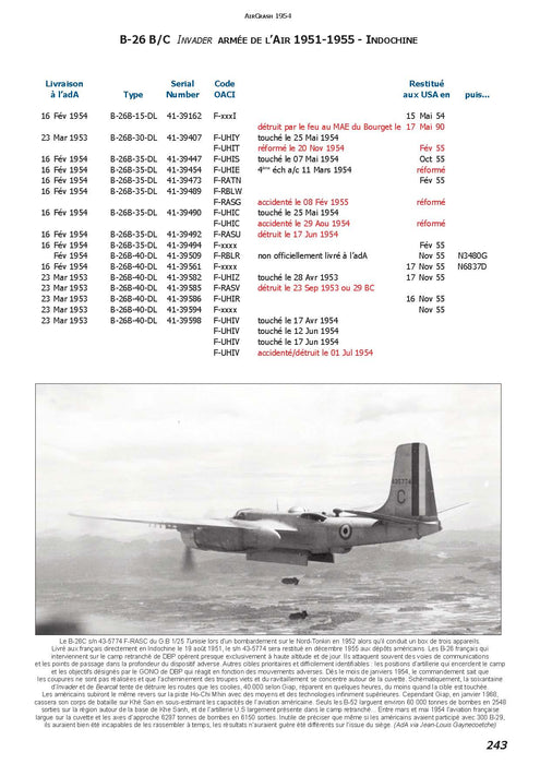 The issue devoted to 1954 is of particular interest: 1954 is the most dramatic year for French air operations in Indochina. It was the year of Dien Bien Phu and France paid a very heavy price. In 262 pages and 229 photos - often unpublished - of information that went unnoticed, fragmentary or passed over in silence, this fascinating volume sheds a special light on this crucial year. Note an interesting "Air Spot" section on the AU-7 Corsairs on loan from the US Navy to the 14F in Indochina.