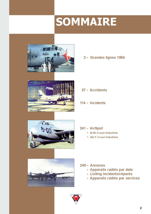 De kwestie die gewijd is aan 1954 is van bijzonder belang: 1954 is het meest dramatische jaar voor de Franse luchtvaartactiviteiten in Indochina. Het was het jaar van Dien Bien Phu en Frankrijk betaalde een zeer zware prijs. In 262 pagina's en 229 foto's - vaak ongepubliceerd - van informatie die onopgemerkt, fragmentarisch of in stilte is overgegaan, werpt dit fascinerende volume een bijzonder licht op dit cruciale jaar. Let op een interessante "Air Spot" sectie over de AU-7 Corsairs die door de Amerikaanse marine zijn uitgeleend aan de 14F in Indochina.