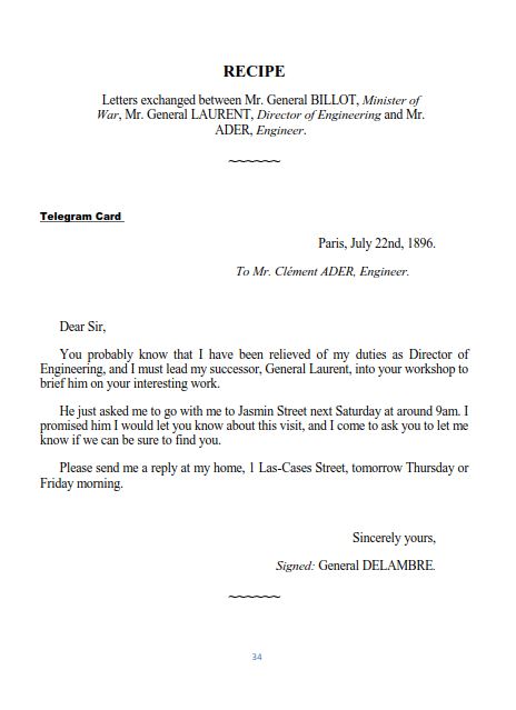 Clément Ader vertelt het verhaal van de bouw van de Eole. Dit apparaat werd door ingewijden en de wetenschappelijke pers beschouwd als het eerste luchtapparaat dat door een man op lage hoogte en op kleine afstand door een man werd gemonteerd. Hij perfectioneerde zijn stoommachine en bouwde in het geheim, onder contract met het Ministerie van Defensie, het eerste vliegtuig. Na een testcampagne in 1891 probeerde hij zijn werk voort te zetten. Het gebrek aan belangstelling van de minister en de administratieve lasten van het leger dwongen hem zijn werk te staken.