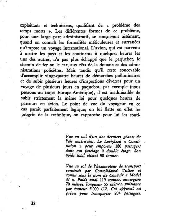 L'ascesa dell'aviazione commerciale, le sue origini, le sue lotte, le sue magnifiche prospettive nel mondo moderno. - Gli inizi dell'aviazione civile - La situazione del trasporto aereo mondiale nel 1939 - Lo sviluppo del trasporto aereo durante le ostilità del 1939-1945 - Alcune cifre eloquenti - L'enorme compito dell'A.T.C. Americano - Il ruolo della Gran Bretagna..... - .... e quello dell'URSS - I problemi del trasporto aereo - Il punto di vista del passeggero - Sicurezza - Regolarità e comfort - Comfort e tariffe per i viaggi aerei - Il punto di vista del tecnico - Attrezzature - Personale - L'aeroporto - Situazione e prospettive della Francia - L'aereo cargo - L'aereo passeggeri - L'aereo taxi, trasporto su richiesta. - Conclusioni