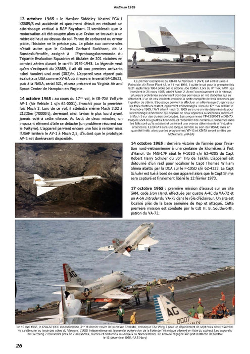 1965年のこの年に捧げられた問題は、フランス空軍の変態性の問題である。初代クルセイダーズ、ミラージュIV、C-135F、アトランティックが就役し、ピューマ、スーパーホーネット、ミステール20が飛行した。最近まで飼っていそうな顔をしてくれます。139ページと180枚の写真(未発表のものが多い)で、これまで気づかれず、断片的に、あるいは沈黙の下にあった情報が、この魅力的な一冊で、深い変遷を遂げた今年に特別な光を当てています。核抑止力のミラージュIVの補給に就役するボーイングC-135Fストラトタンカーについての興味深い「エアスポット」の項は、注目に値する...